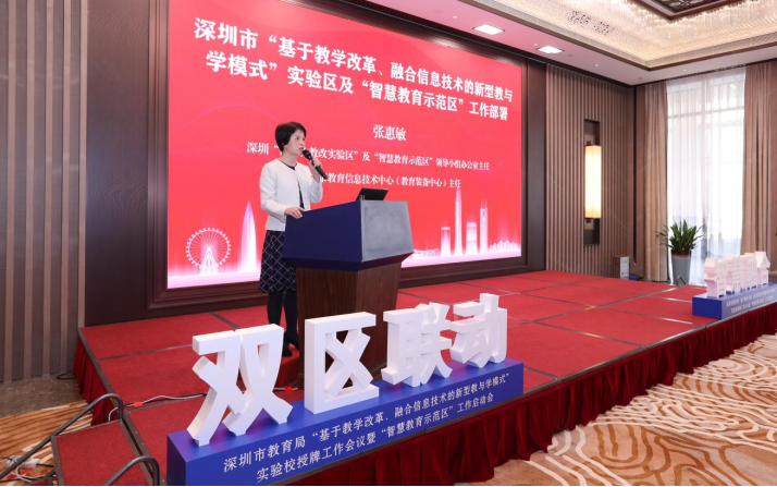 深圳市教育信息技术中心主任张惠敏勉励受到表彰的深圳学校再接再厉、再创佳绩,以更大热情拥抱新一轮的信息化建设浪潮:“深圳所有申报的学校全部都入围广东省信息化中心校,深圳也是全省唯一全部申报学校均入围的城市。深圳学校都做得非常好,每个学校都非常有特色,因此在广东省的评价里面,不管是数量还是质量,深圳学校都是处在前列。接下来,深圳市正在开展教育信息化‘双区’建设,期望这些学校在完成上一轮广东省的考核之后,以更大热情、更实举措投入到深圳的两个国家级‘双区’建设中间来,取得更辉煌的成就。”