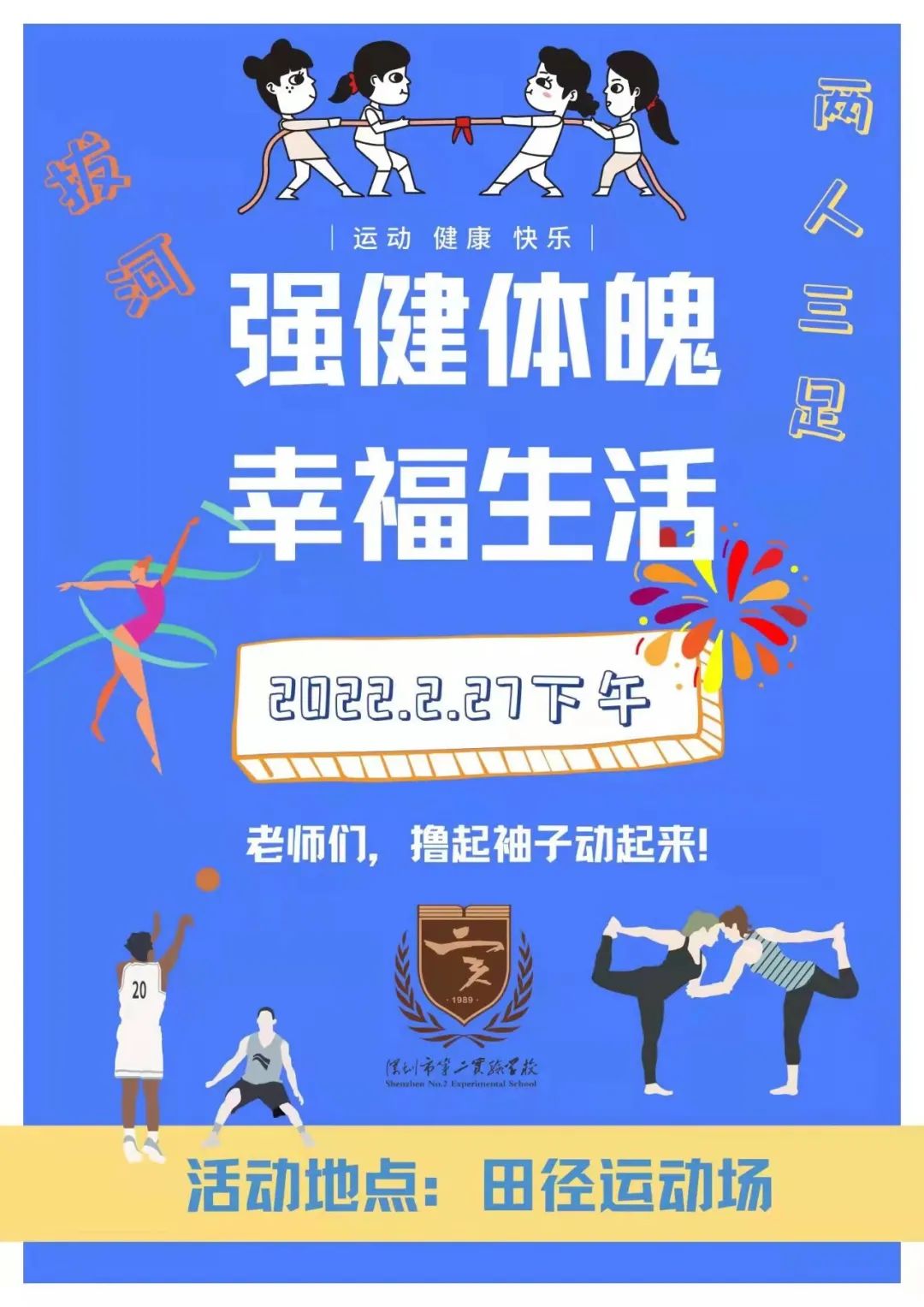 2月27日下午,深圳市第二实验学校校园热闹非凡,高三年级举行了师生趣味运动会。看大片、卡啦OK赛、篮球赛、排球赛、教师拔河比赛、七人八足赛,师生足球联谊赛……精彩上演,二实校园成欢乐的海洋。