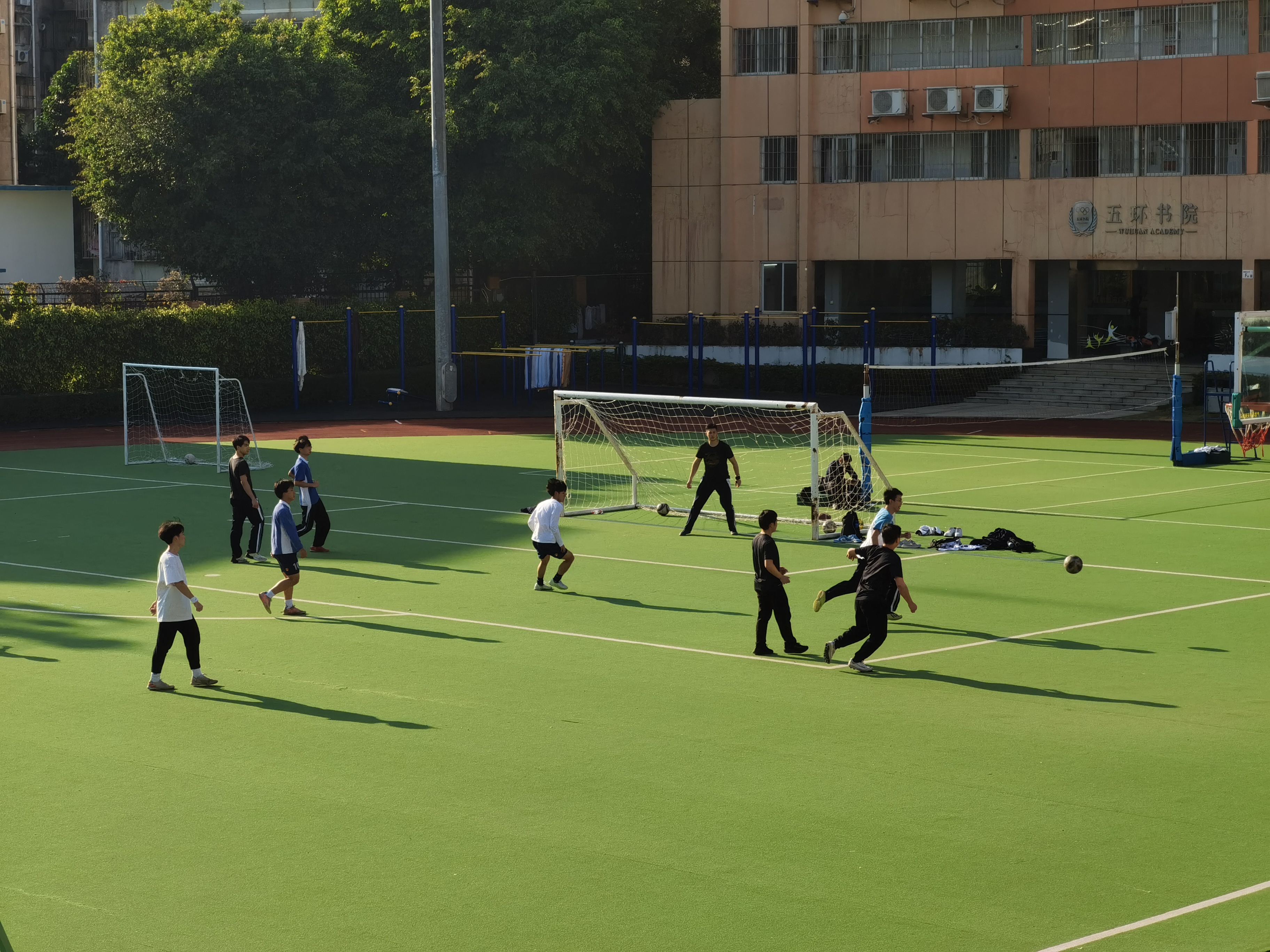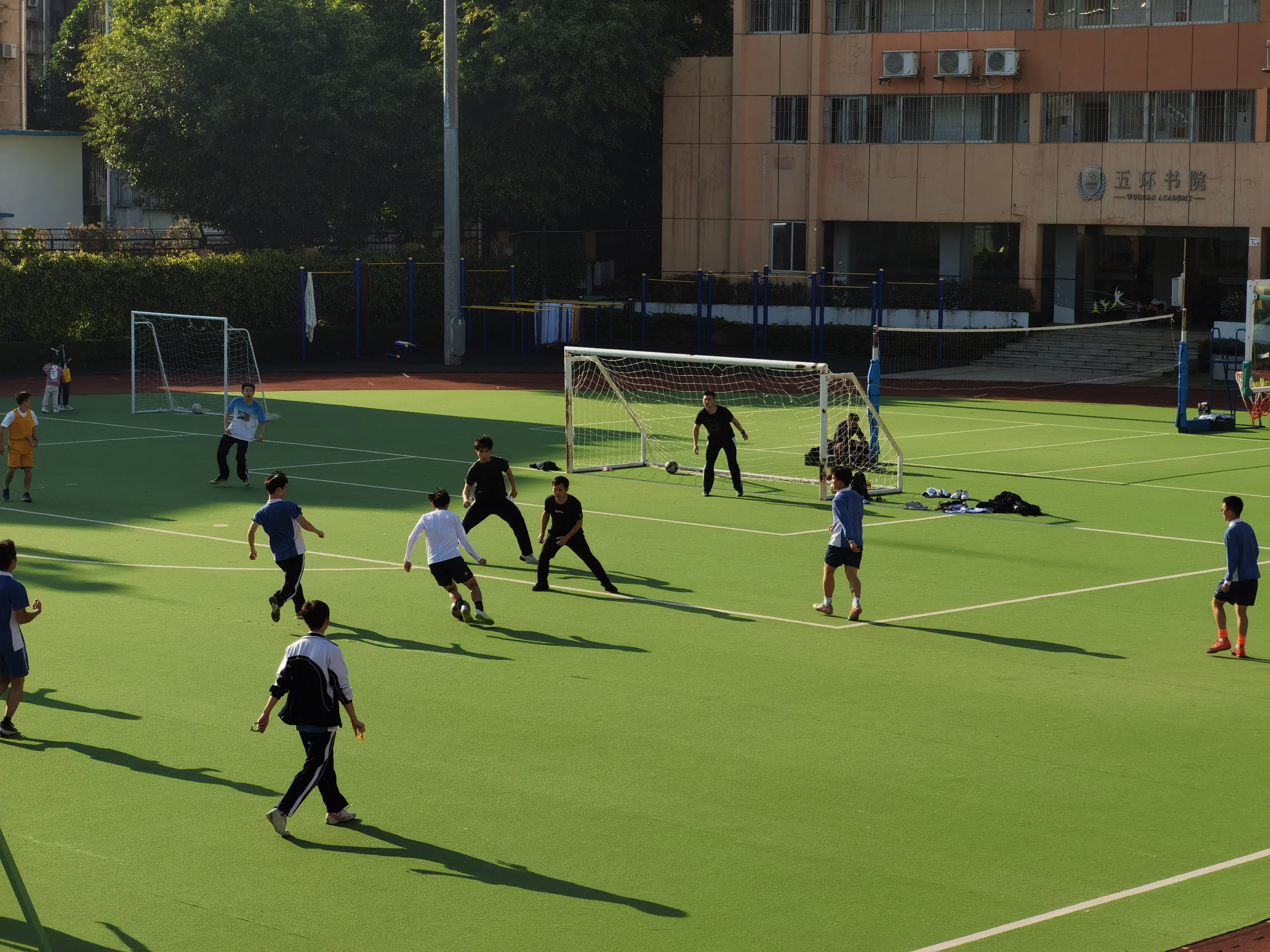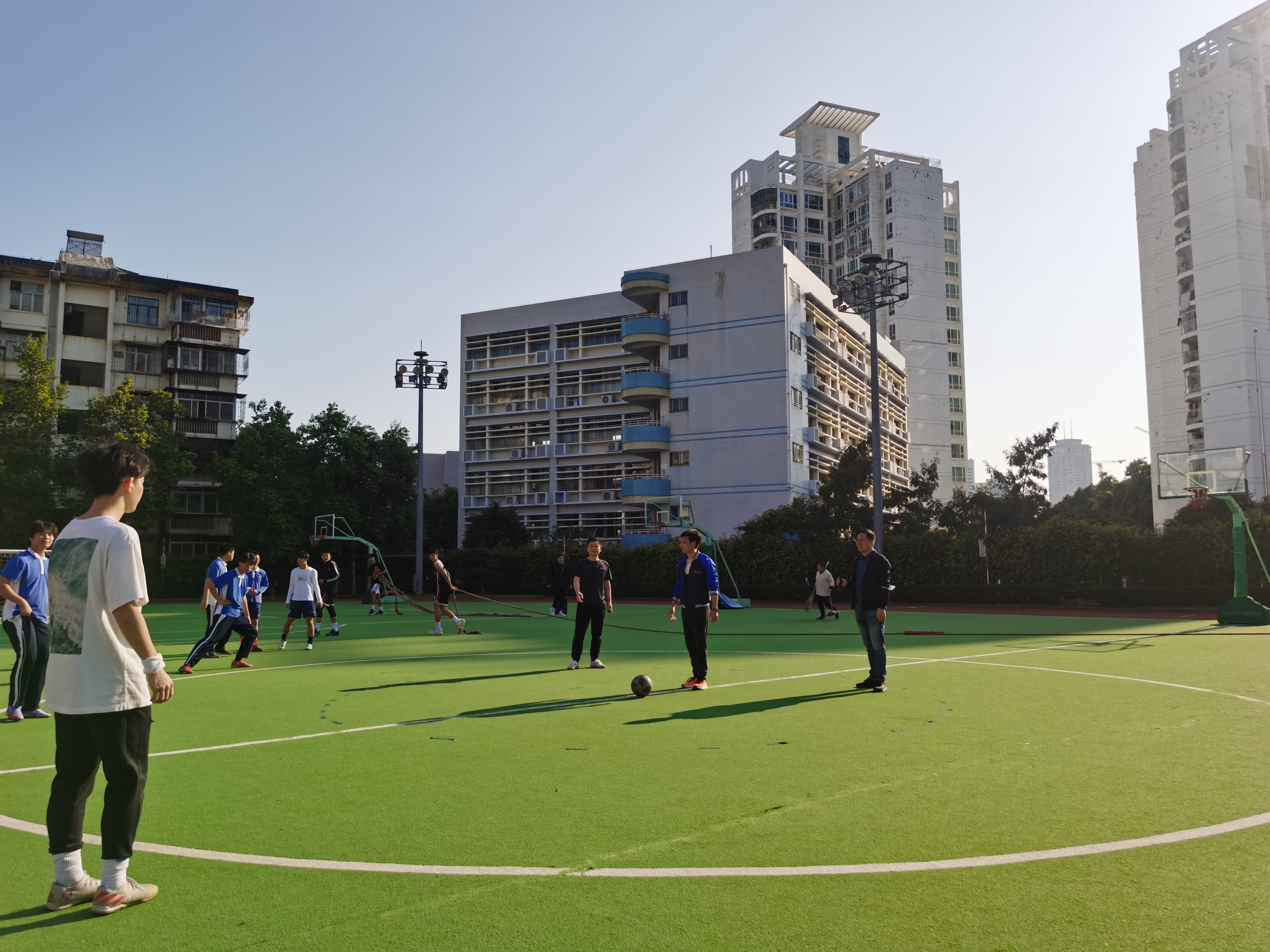 师生足球联谊赛鸣哨开打!盘带过人、长传配合、胸部停球、长途奔袭,凌空抽射,飞身扑救,飘逸抢断,防守反击……你来我往,活力四射!学生们的篮球赛和排球赛也都精彩纷呈。