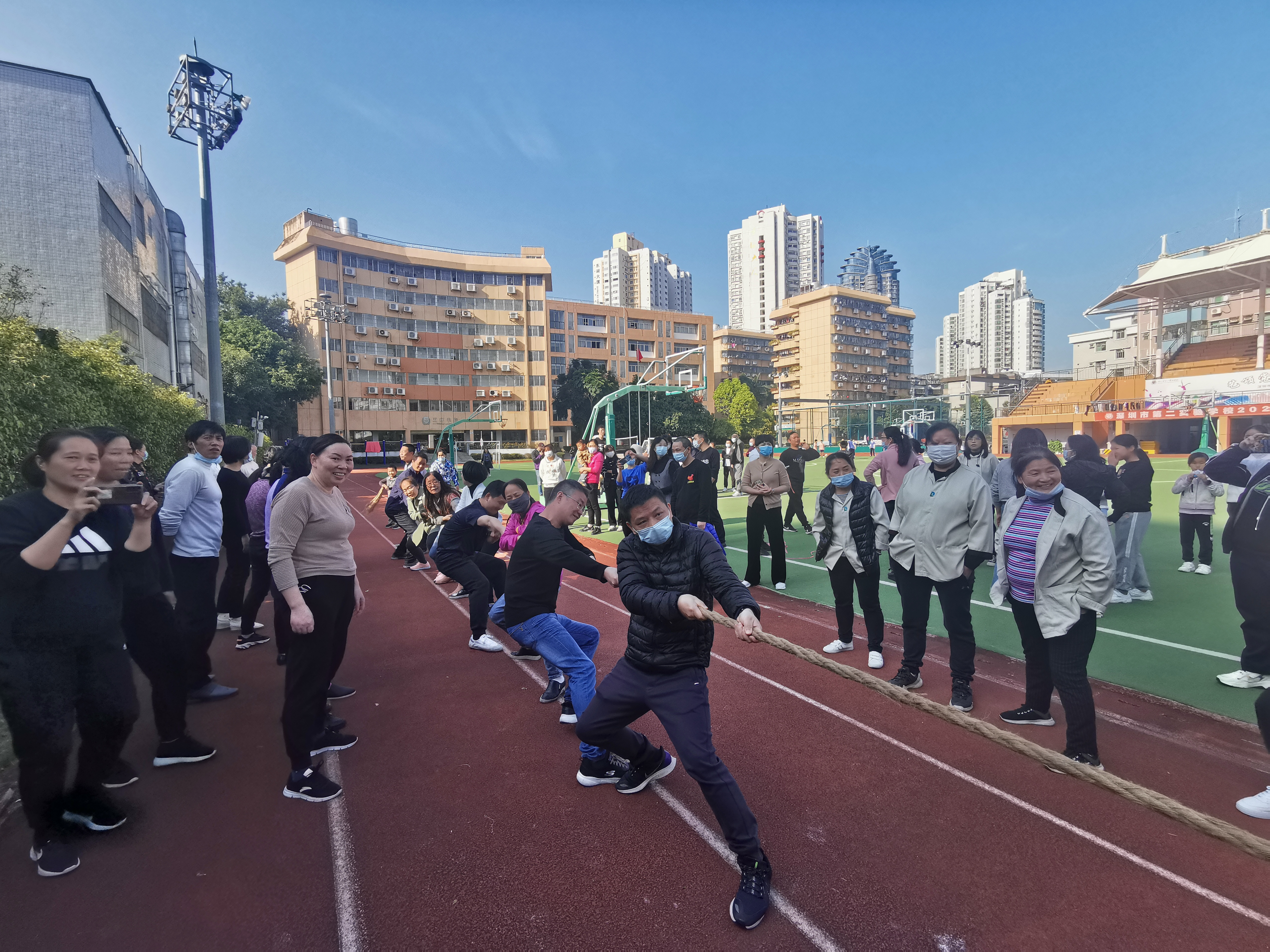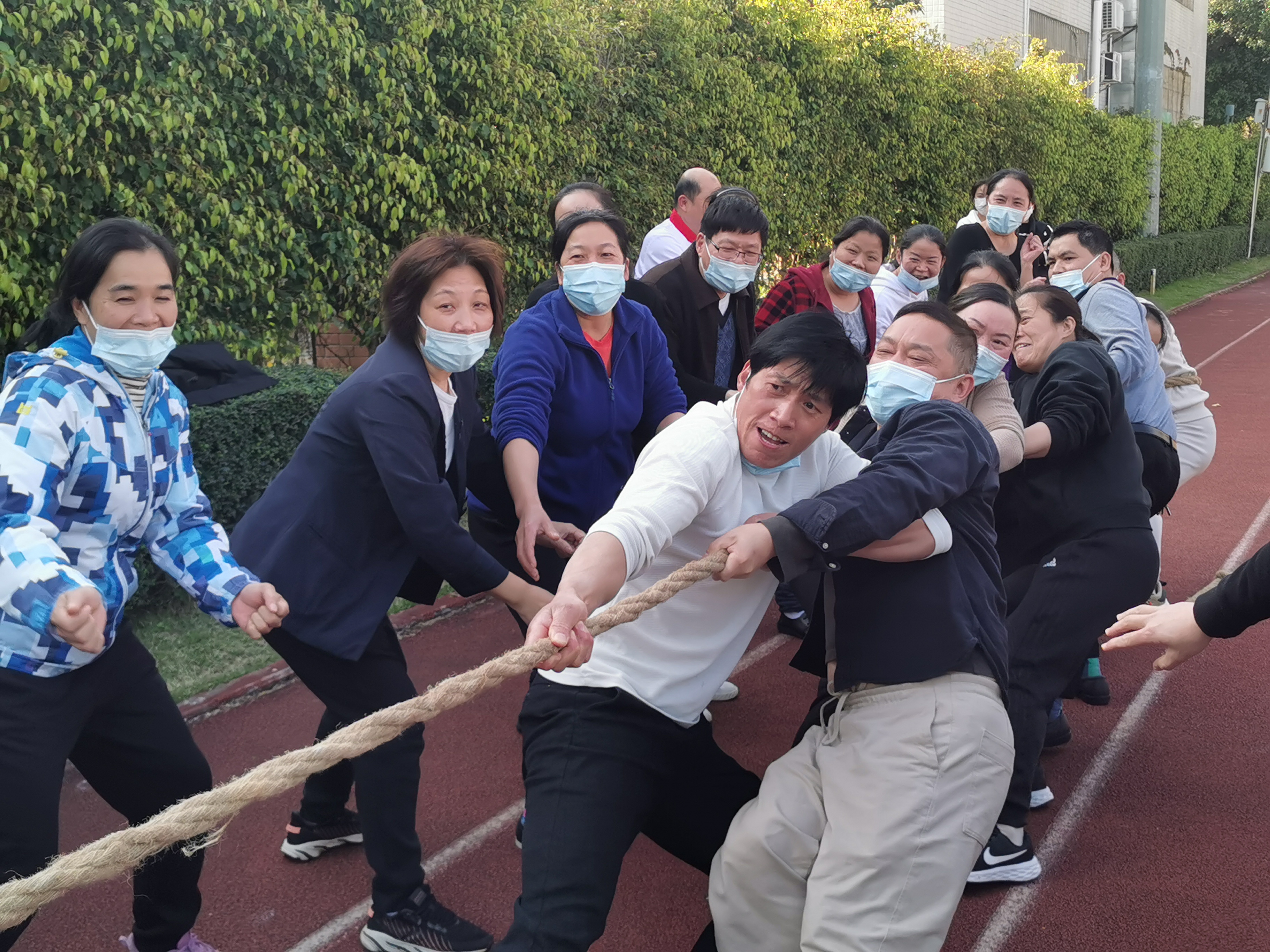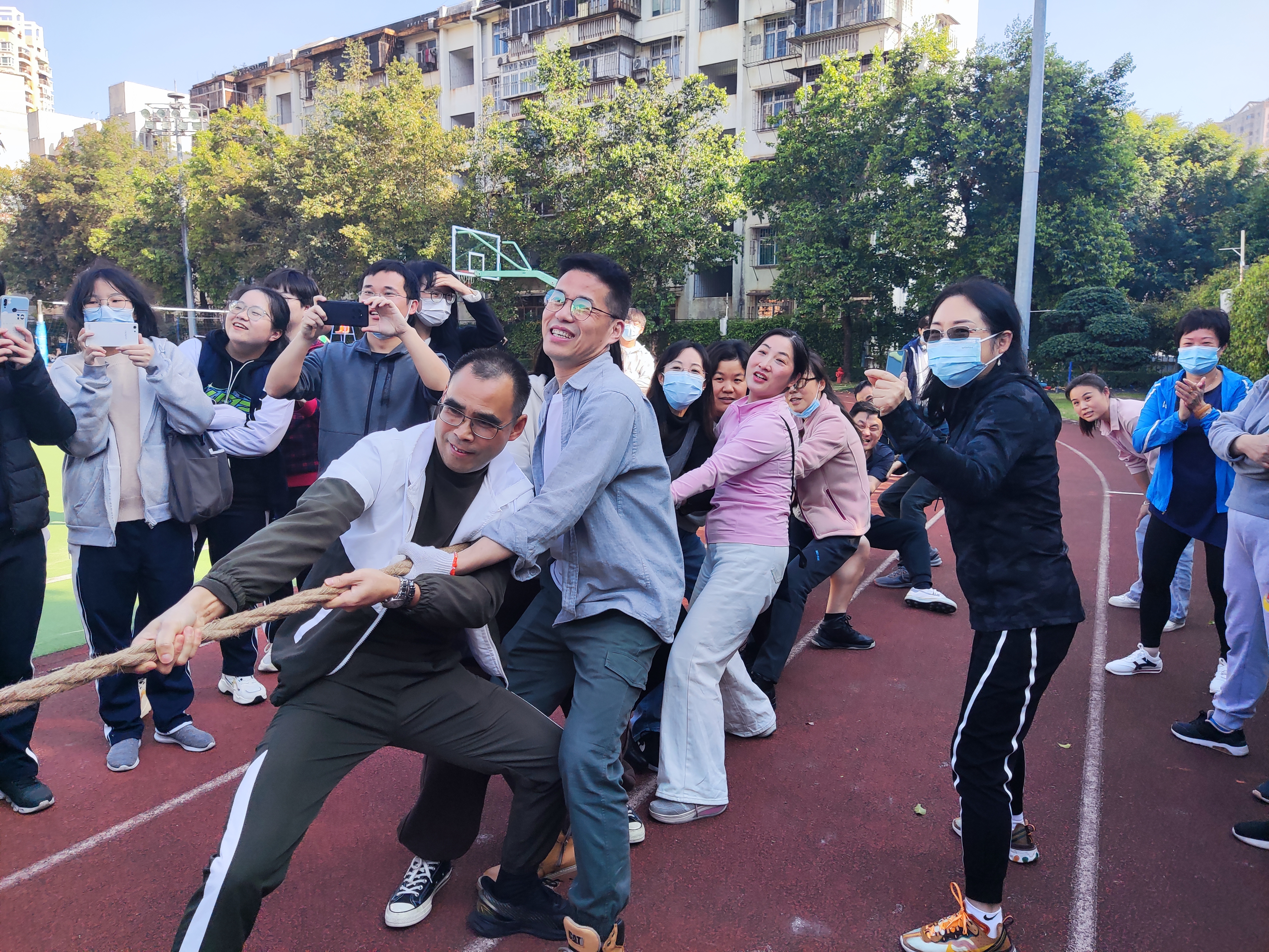 教职工的拔河比赛,男老师面红耳赤、青筋暴露,女老师放下淑女风范,在红绳两端奋力博弈。
