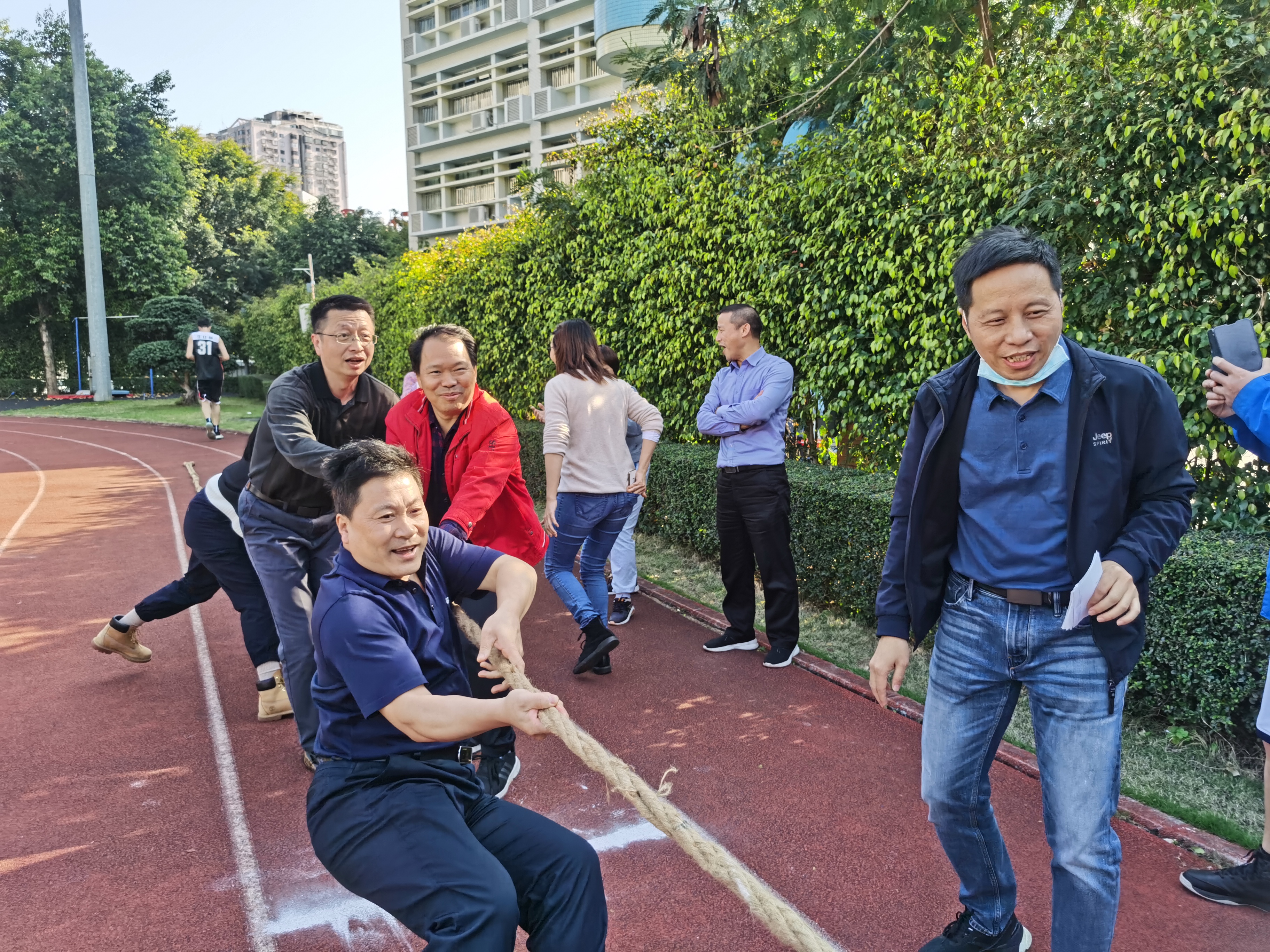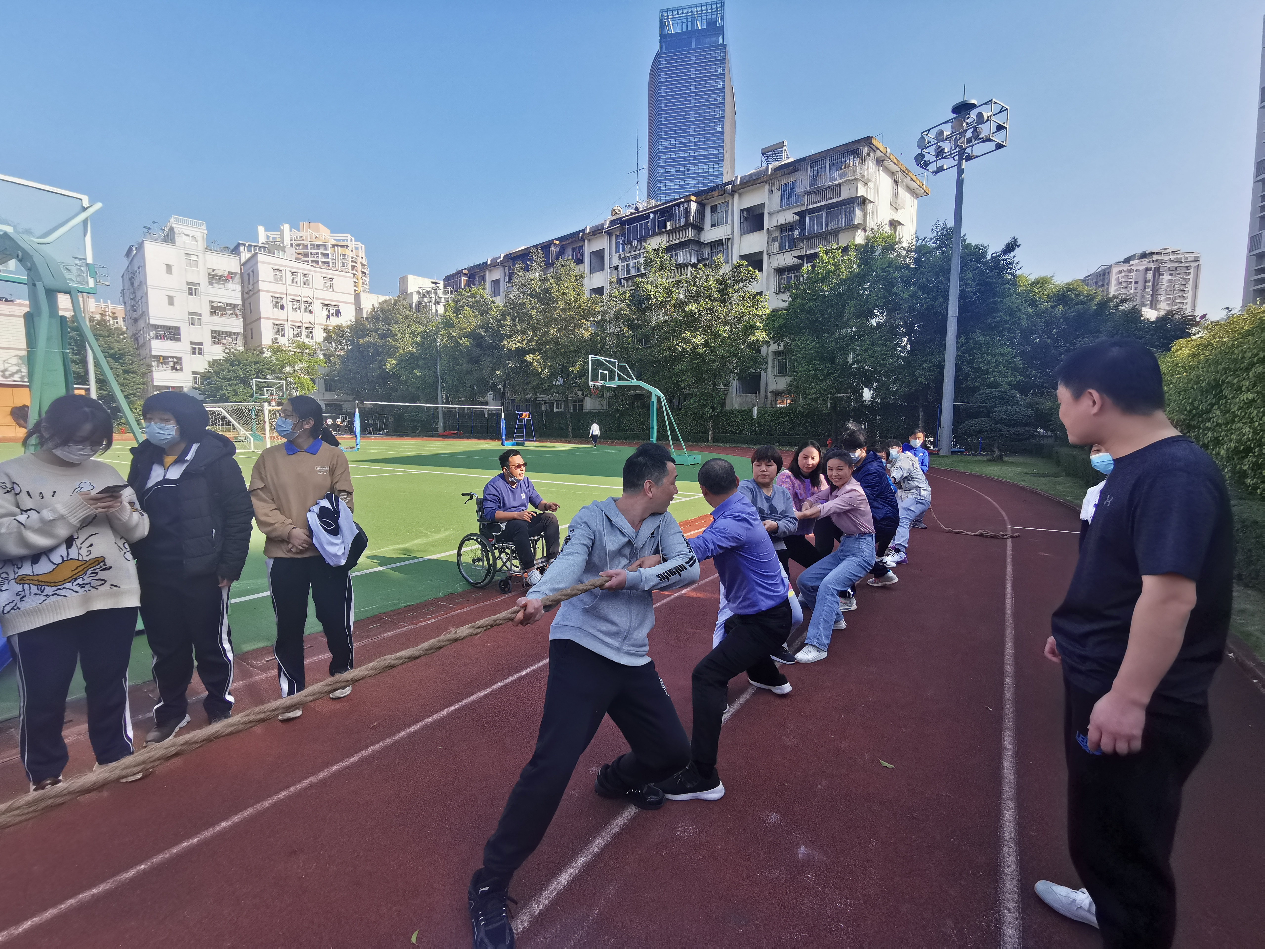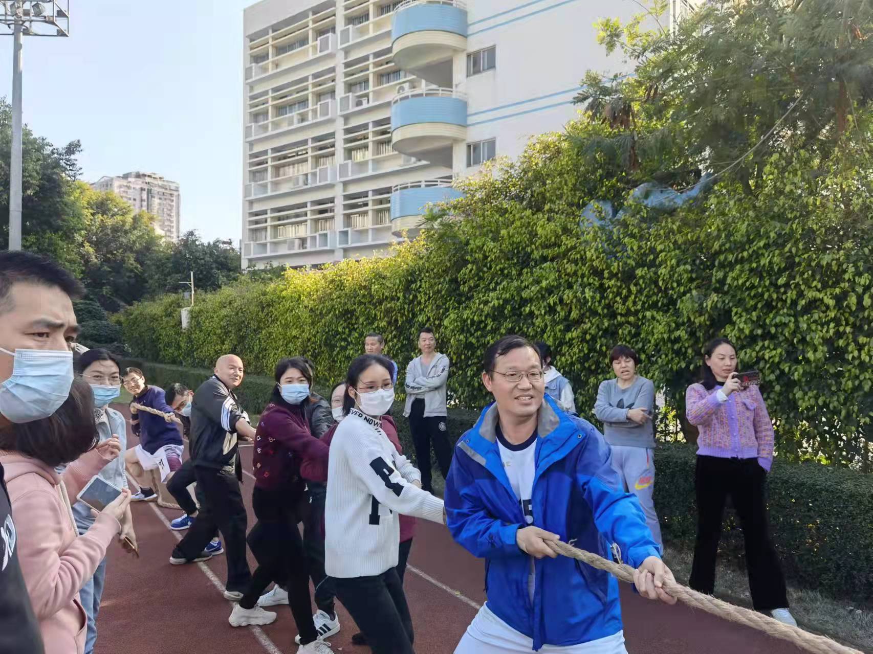 教职工的拔河比赛,男老师面红耳赤、青筋暴露,女老师放下淑女风范,在红绳两端奋力博弈。