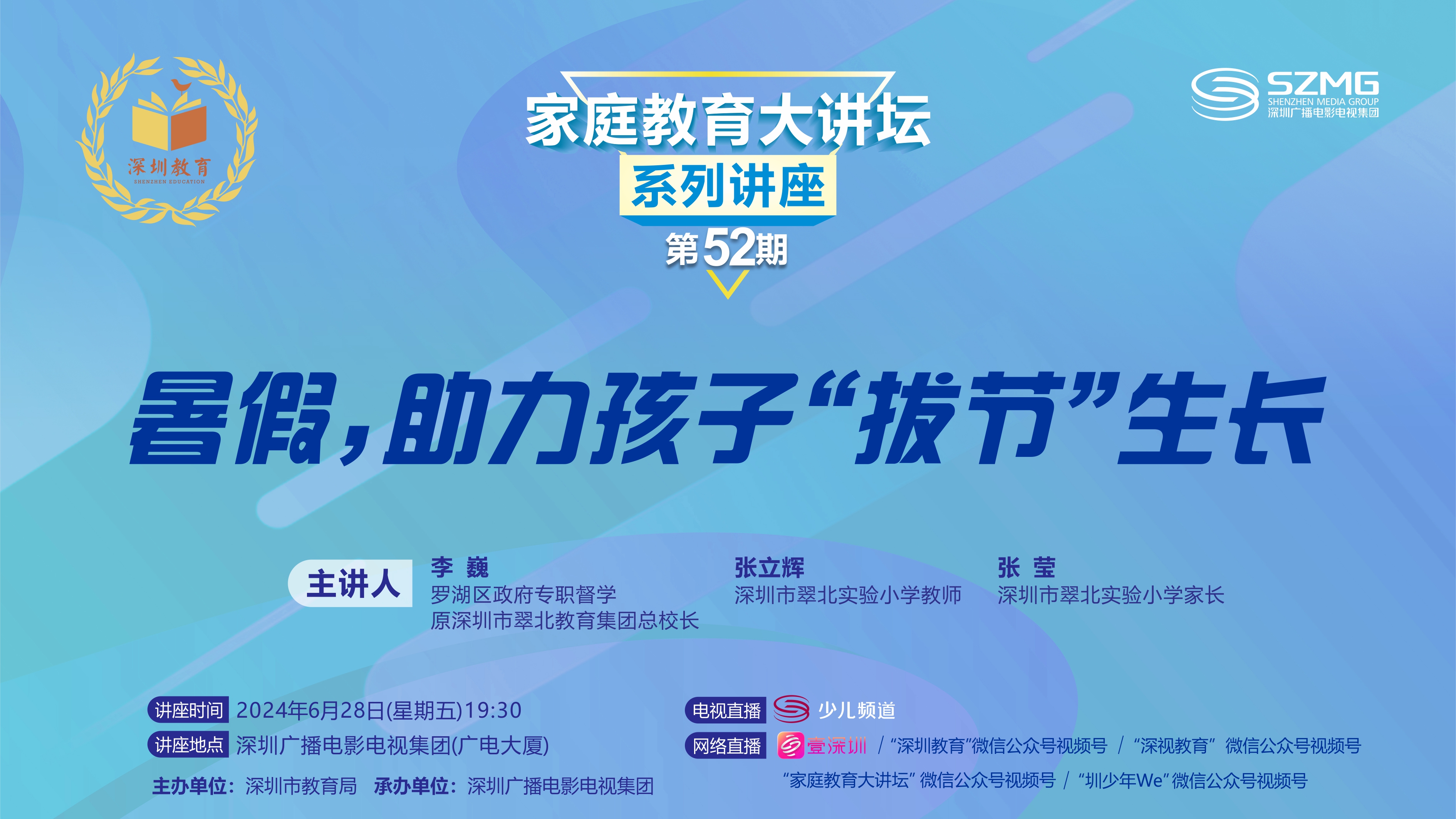 网络直播:壹深圳、“深圳教育”微信公众号视频号、“家庭教育大讲坛”微信公众号视频号、“深视教育”微信公众号视频号、“圳少年We”微信公众号视频号。