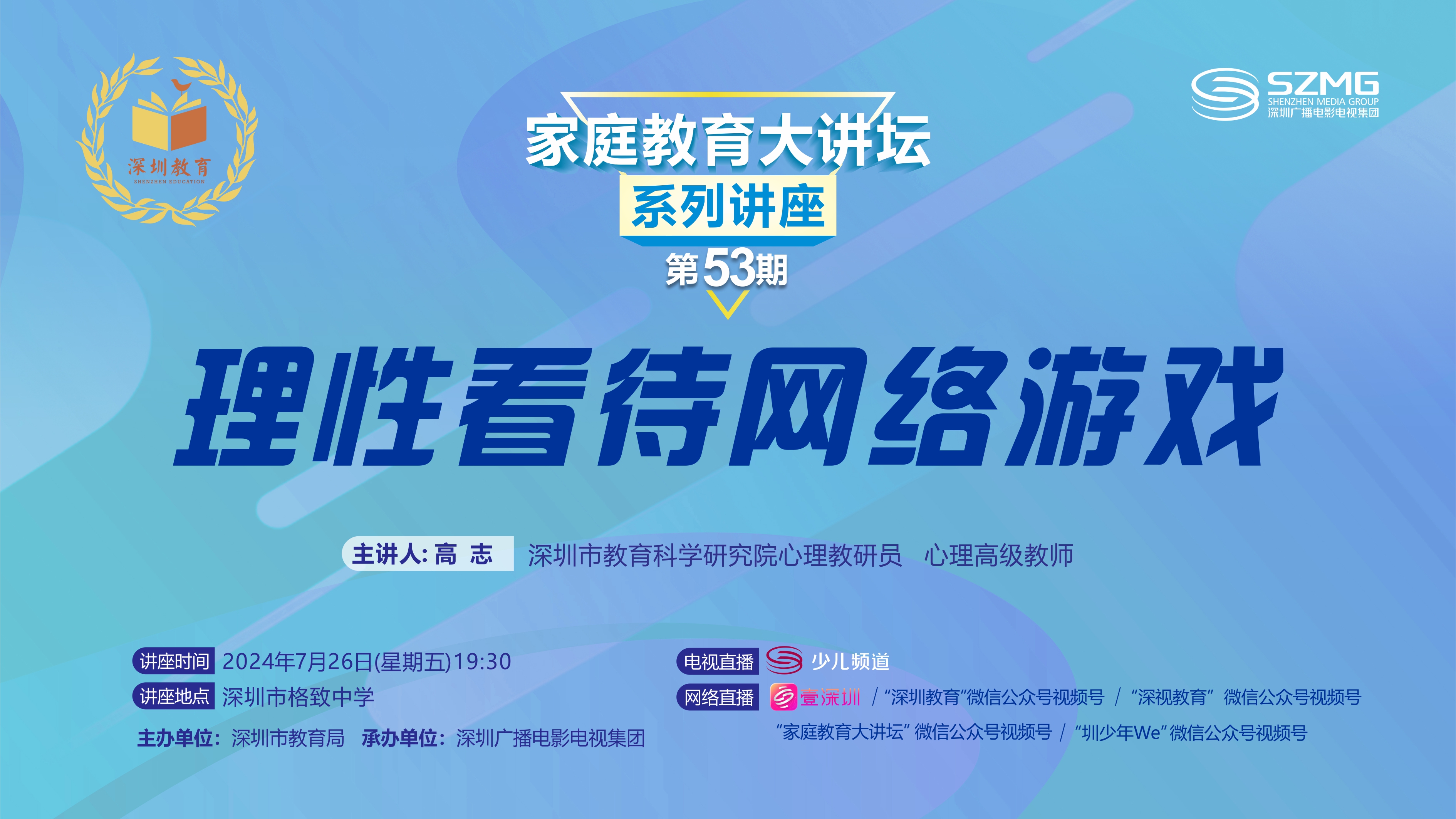 网络直播:壹深圳、“深圳教育”微信公众号视频号、“家庭教育大讲坛”微信公众号视频号、“深视教育”微信公众号视频号、“圳少年We”微信公众号视频号。