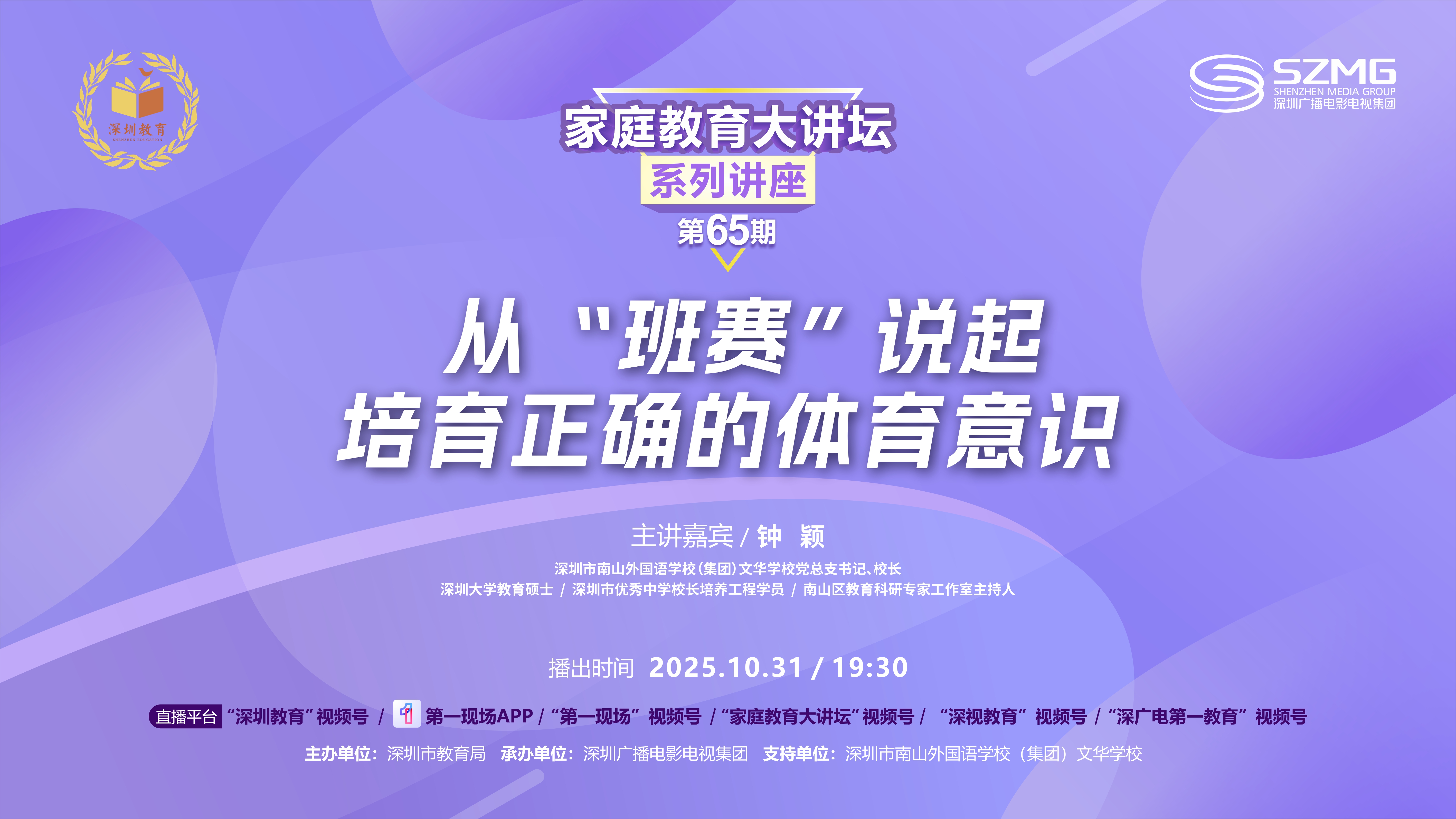网络播出:第一现场APP、“深圳教育”视频号、“第一现场”视频号、“家庭教育大讲坛”视频号、“深视教育”视频号、“深广电第一教育”视频号