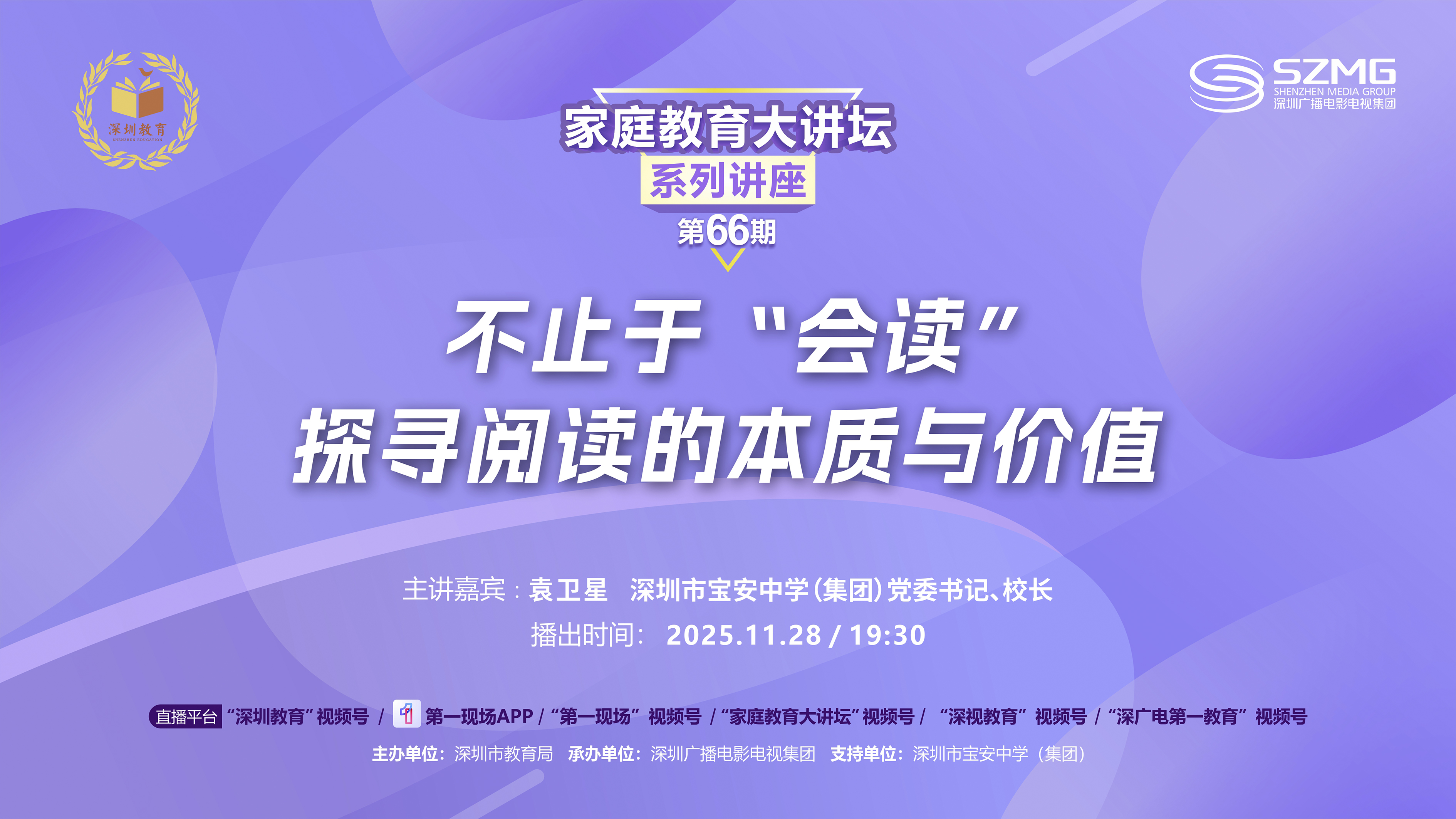 网络播出:第一现场APP、“深圳教育”视频号、“第一现场”视频号、“家庭教育大讲坛”视频号、“深视教育”视频号、“深广电第一教育”视频号