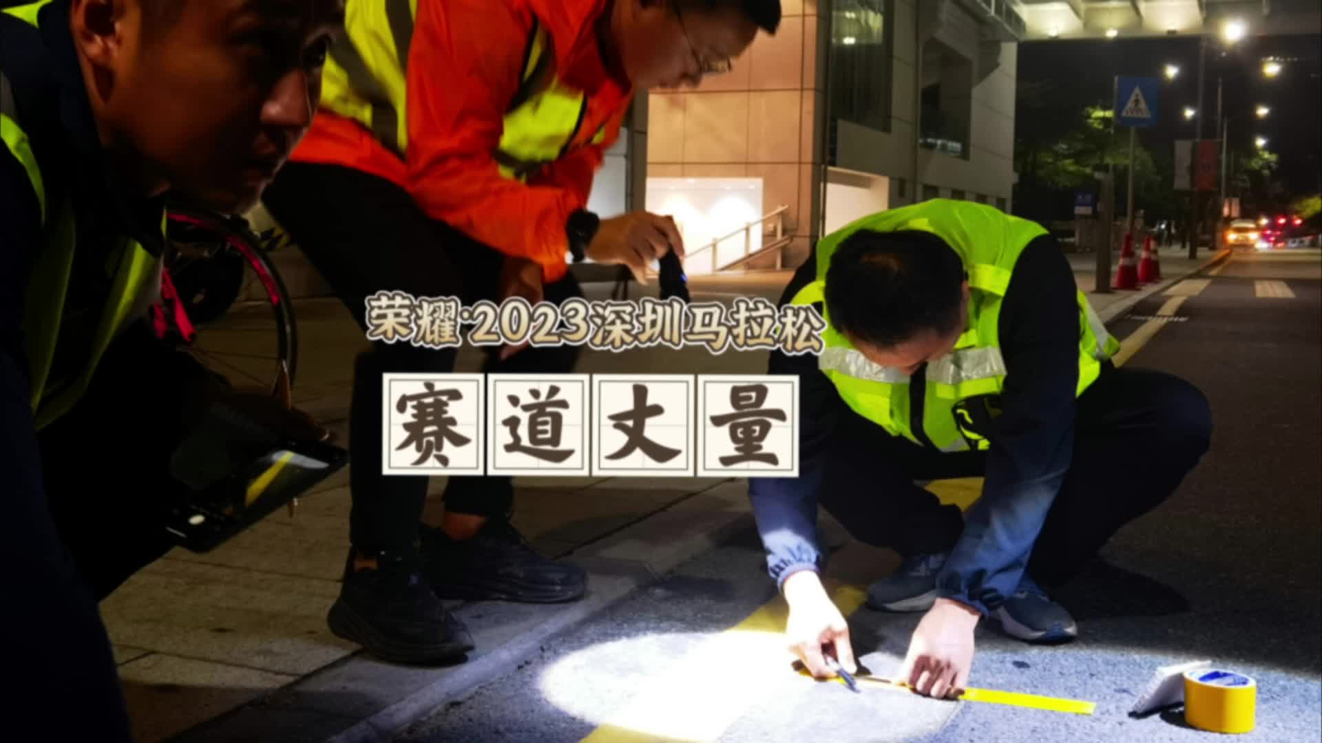 午夜时分,他们奋战在赛道丈量现场,认真专注确保精准无误。他们是荣耀·2023深圳马拉松顺利举办的幕后团队!