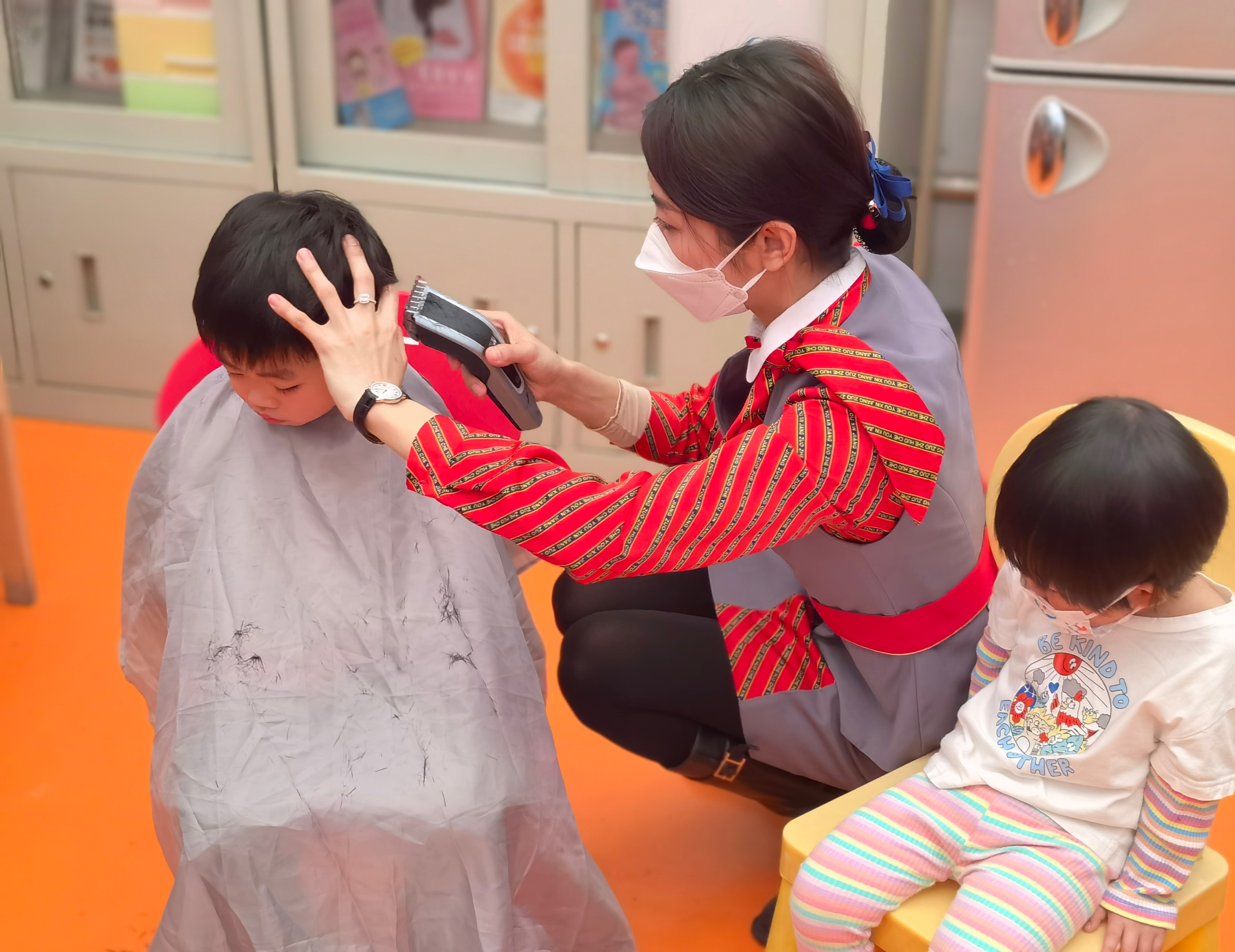 “毅毅,让这位小姐姐给你理发好不好?”本来打算后天要去给孙子理发的陆阿姨看到迎春花服务队员还安排了免费理发服务时,当即决定给孙子毅毅报了名。围布、夹剪、抓剪、挑剪、锯剪、削剪……一套流程下来,迎春花服务队员的理发技巧让一旁的陆阿姨竖起了大拇指,周围还有几个旅客正跃跃欲试……