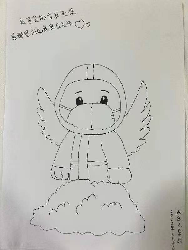 暖哭了!3月20日19:00,深圳市第三人民医院(南方科技大学第二附属医院)A栋5楼病区值班手机里收到三张手绘漫画:一张是穿着防护服的大白,虽然全副武装,但眼睛却笑弯了;一张是睁大着眼睛在认真地采核酸的大白;还有一张是插着翅膀的大白天使。画的署名都是“25床小孕妇”。医护人员感动不已。