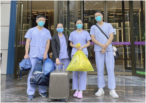 (图片:左一的陈小林主任和医疗团队入住隔离酒店随时待命)