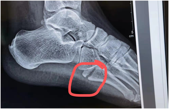 事实上,当天从采样点撤下来,黄恒一身冷汗,回到医院,拍片一看,左足第5趾骨基底部骨折。医生让她马上住院,消肿后手术。如果不马上治疗,会导致脚部肿胀加重、骨折移位,将来可能影响肢体的功能。