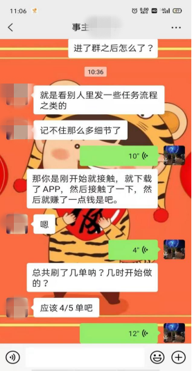 据欧先生描述,今年2月底,自己被网友拉进一个QQ群,群内在推荐兼职刷单赚佣金,时不时有“客服”抛出新的刷单任务,还有很多人发送收益截图。观望了一阵子后,欧先生心动了,抱着试一试心态,下载了群内“客服”推荐的刷单APP,并按照对方的要求进行刷单。第一单欧先生充值了100元,“赚了”13元并拿回了本金,于是欧先生紧接着又刷了一单,“赚了”20元。尝到甜头后,欧先生对这个“工作”深信不疑。