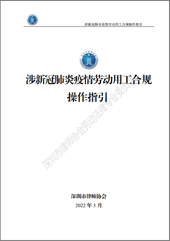 受疫情影响,部分行业、企业面临较大的生产经营压力,为保护劳动者合法权益,构建和谐劳动关系,深圳市律师协会今天正式发布《关于涉新型冠状病毒肺炎疫情劳动用工合规操作指引》,为深圳律师、用人单位等处理涉疫劳动用工合规问题提供指引。