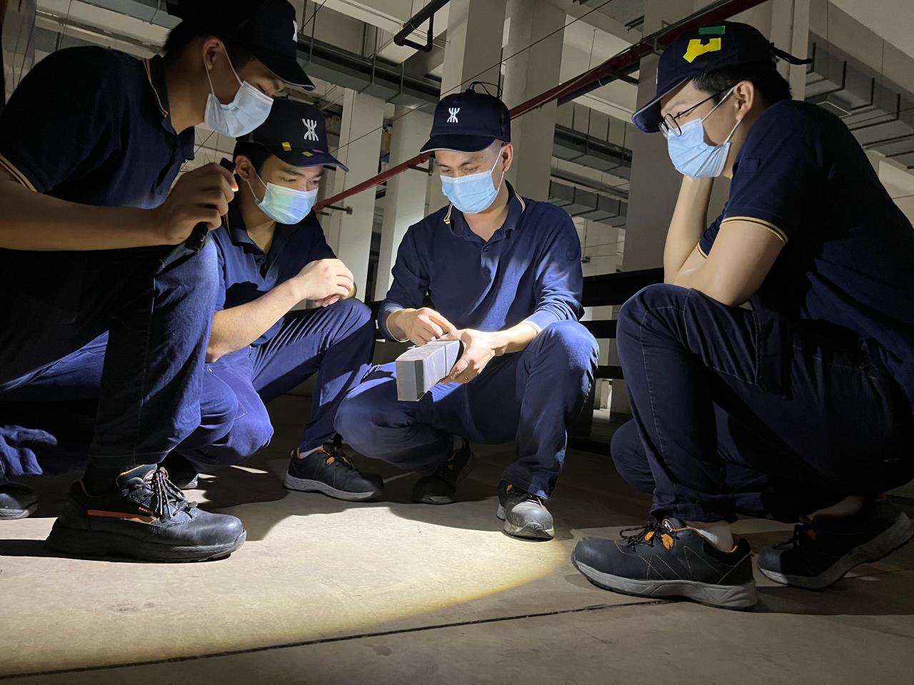 有人把检修轮值班的人形容成部队中的“特种兵”,确实,这里的检修人员都拥有丰富的理论知识与故障处理能力,全面而专业,因防疫工作需要,他们又练就了列车的防疫消杀本领。除了正常的检车和故障处理,郭奇他们对列车车厢、车体进行清洁消毒,重点对列车空调进行消杀,这一晚,他们给46辆5号线列车“洗了澡”。
