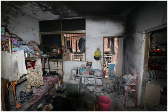 2022年04月17日17时48分许,深圳市罗湖区清水河吓围新村一出租屋内发生火灾。罗湖区消防救援大队接到报警后,第一时间赶到现场,将火扑灭。该起火灾造成过火面积约两平米,整个房间墙壁及天花被浓烟熏黑,房间里家具物品呈现不同程度烧损。
