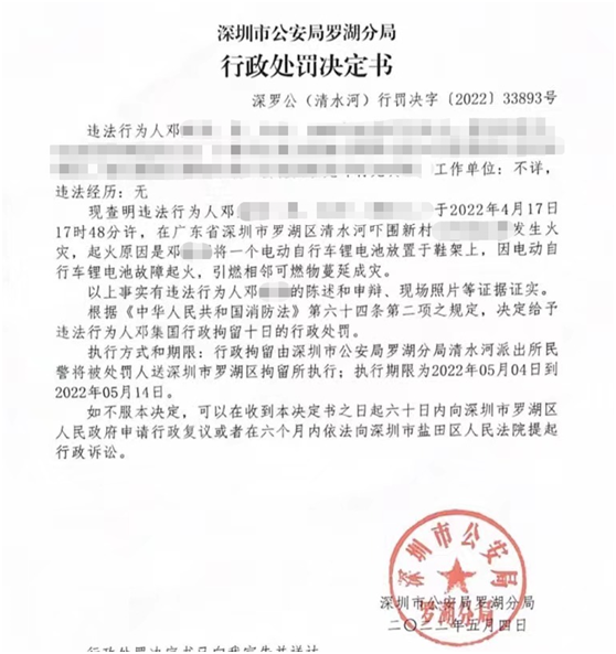 经调查发现起火原因是住户私自将电动自行车锂电池带入家中,并放置鞋架上,该锂电池故障起火,引燃相邻可燃物蔓延成灾。