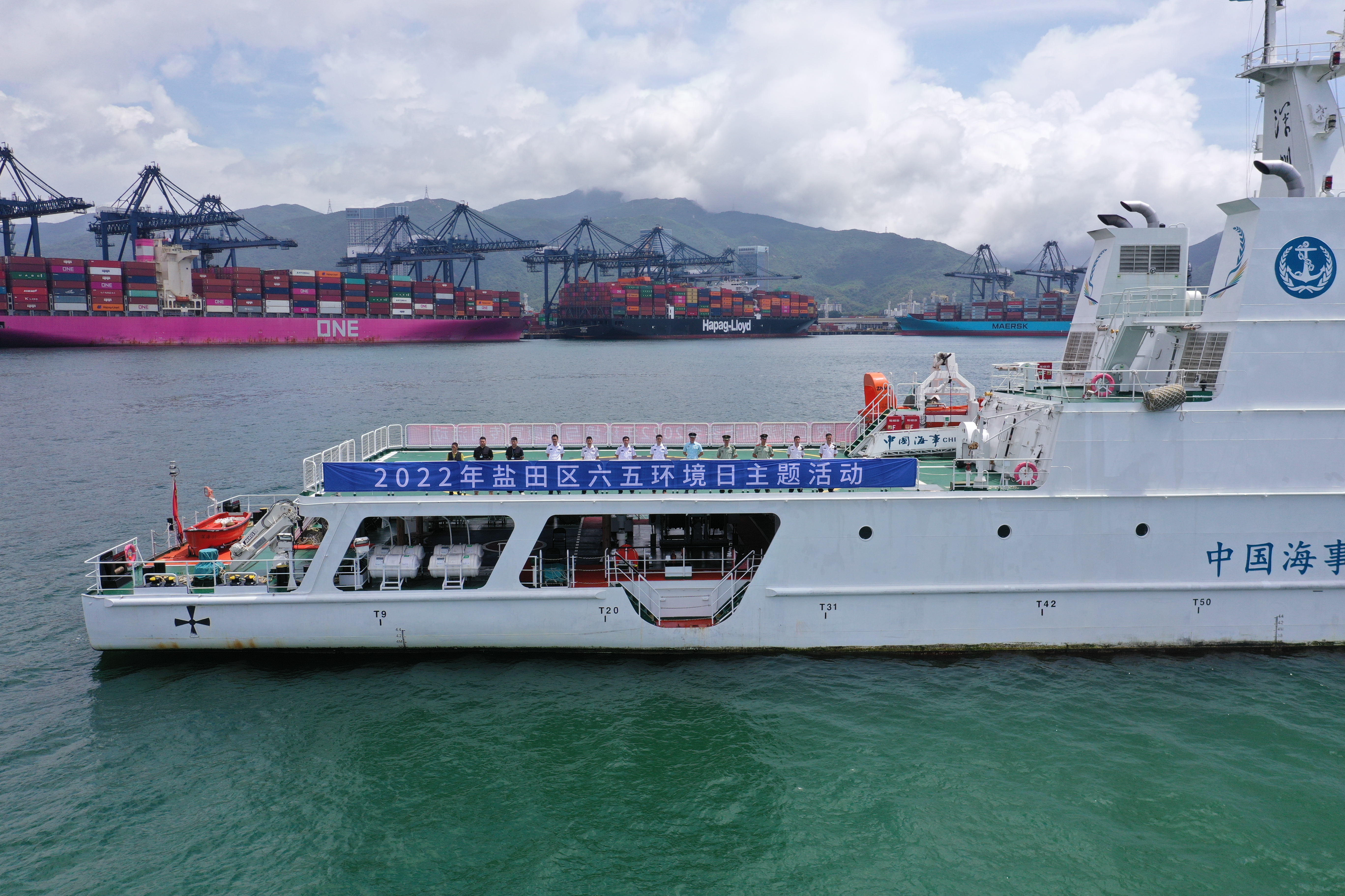 在现场活动结束后,与会领导和嘉宾前往深圳海事局东部基地,登船开展盐田区六五环境日海洋生态环境保护联合行动。据了解,本次所使用的乘船为“深海01”号,这是国内首艘采用混合电力推进系统的海上公务船,在船舶功能设置和系统集成方面具有创新性,达到了国际一流水平。
