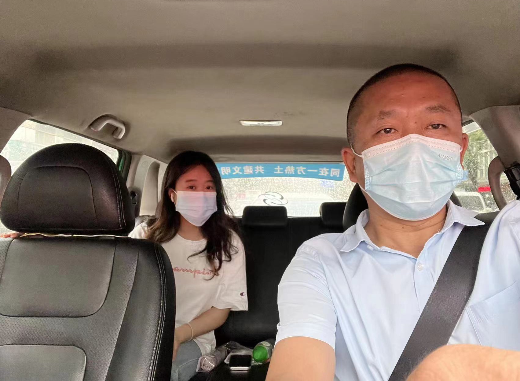 深港集团港龙爱心的哥王德智在6月4日通过预约,预定为高考生提供一对一接送服务,6月5日突然身体不适紧急住院,不能继续护送考生。居住在大亚湾港龙爱心队员李兵池了解情况后,接力这次送考服务,今天(7号)一大早,他冒着倾盆大雨,从50公里之外的大亚湾赶到龙岗坂田,接送考生,由于当天大雨过后道路湿滑,车辆被撞。港龙爱心队员刘跃飞迅速接下接力棒,及时赶到,从布吉金坑将考生及时平安护送到罗湖外国语学校。