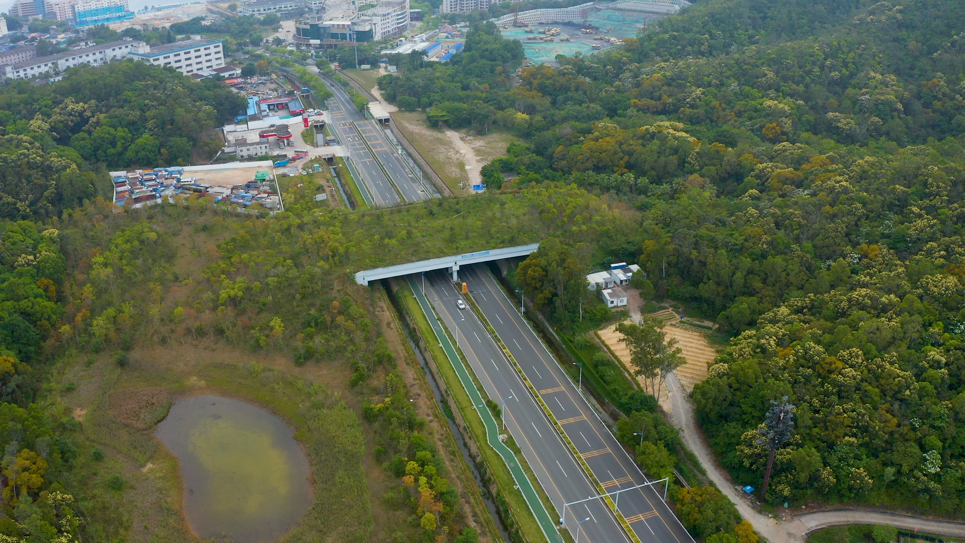 这个100公顷的超大动物桥梁,是深圳首个生态节点工程,也是城市环境中非常少见的野生动物保护廊道,保证了大鹏半岛从南向北连通的生物交流。从此,南北边的小动物们不用隔岸相望可以直接见面了,正式结束异地恋。