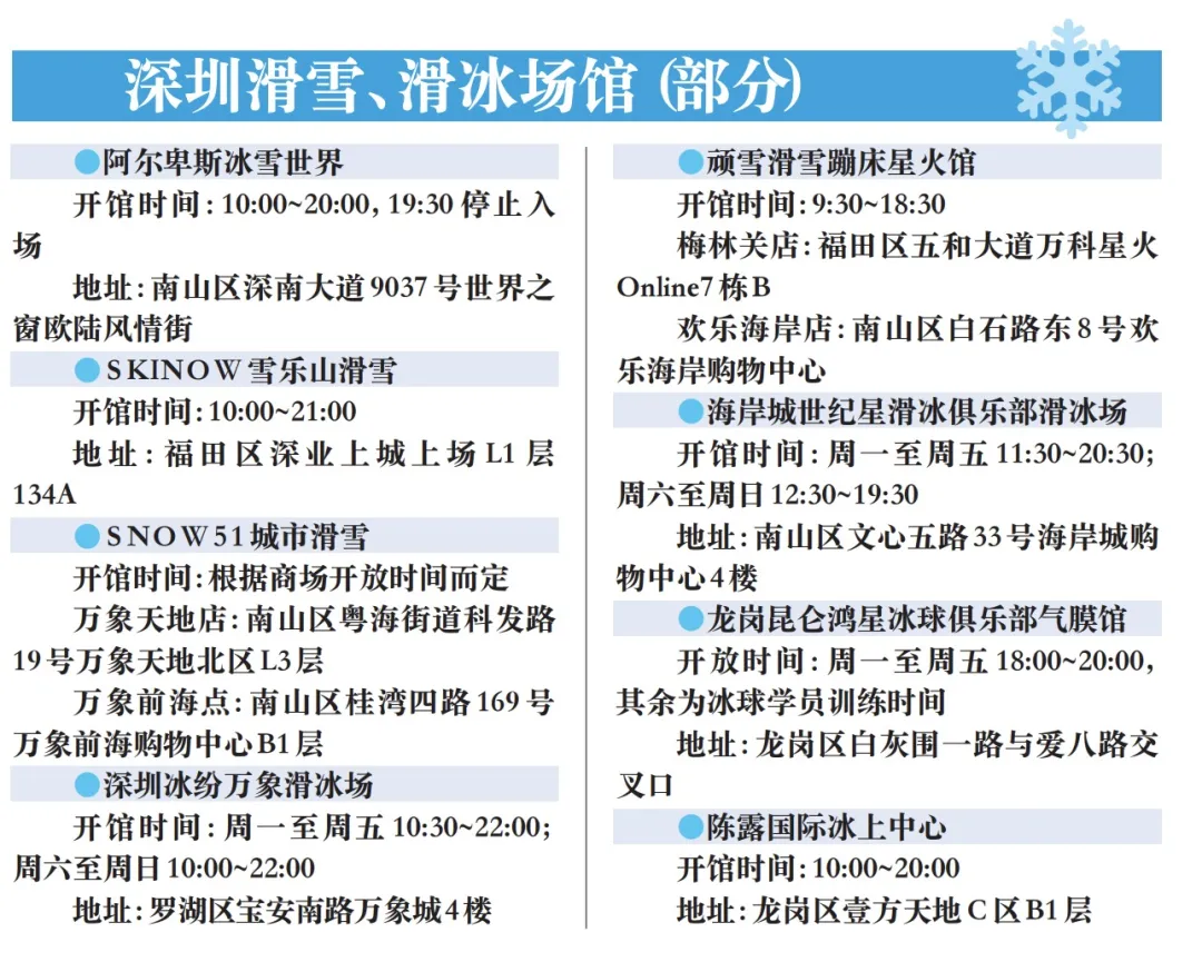 最新发布的去哪儿数据显示,深圳人最爱的滑雪场地中,除了有北上追踪真雪场,也有近在眼前的南山万象天地、宝安大仟里、罗湖万象城等购物中心自带的冰雪游乐场。