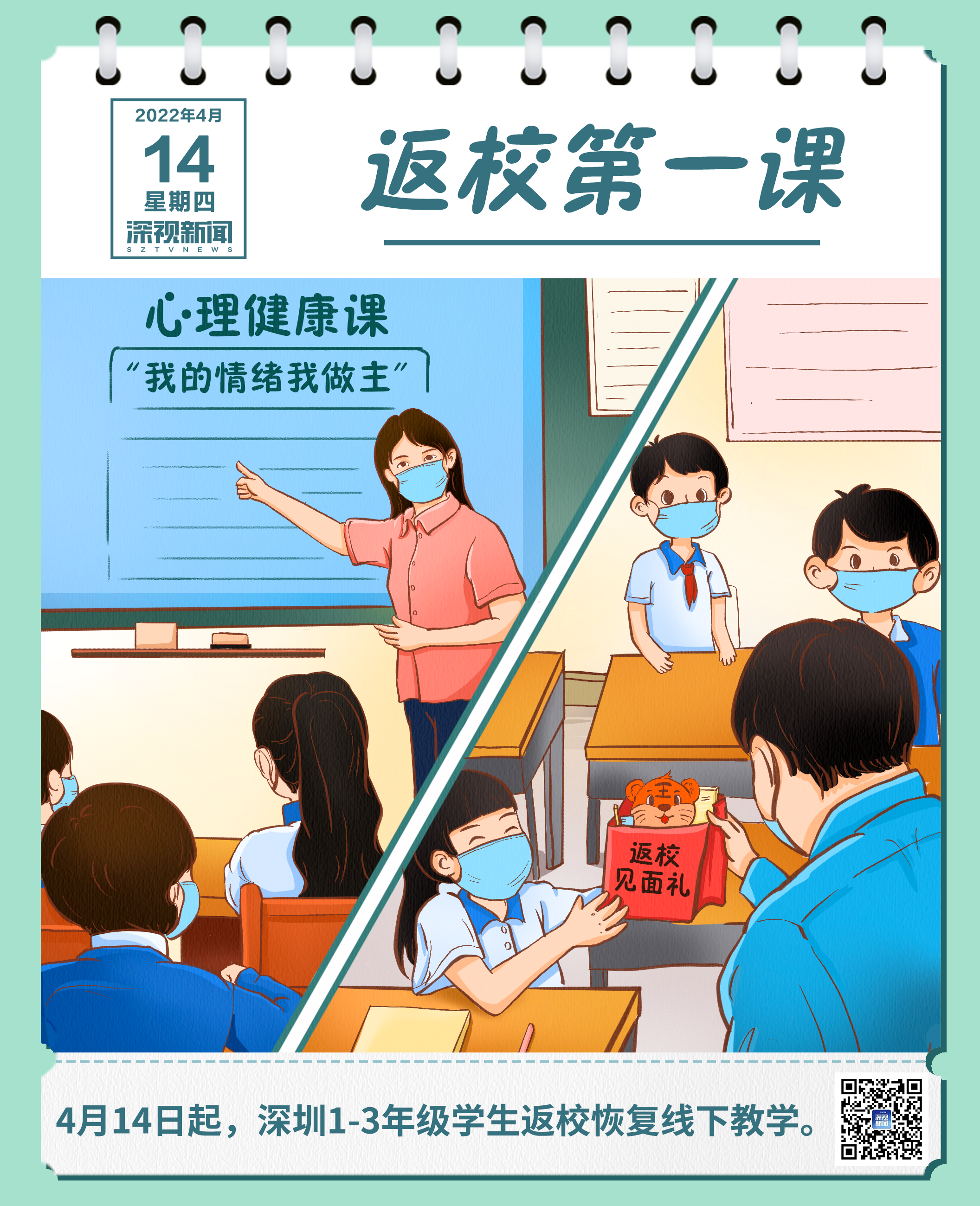 4月14日起,深圳1-3年级学生返校恢复线下教学。