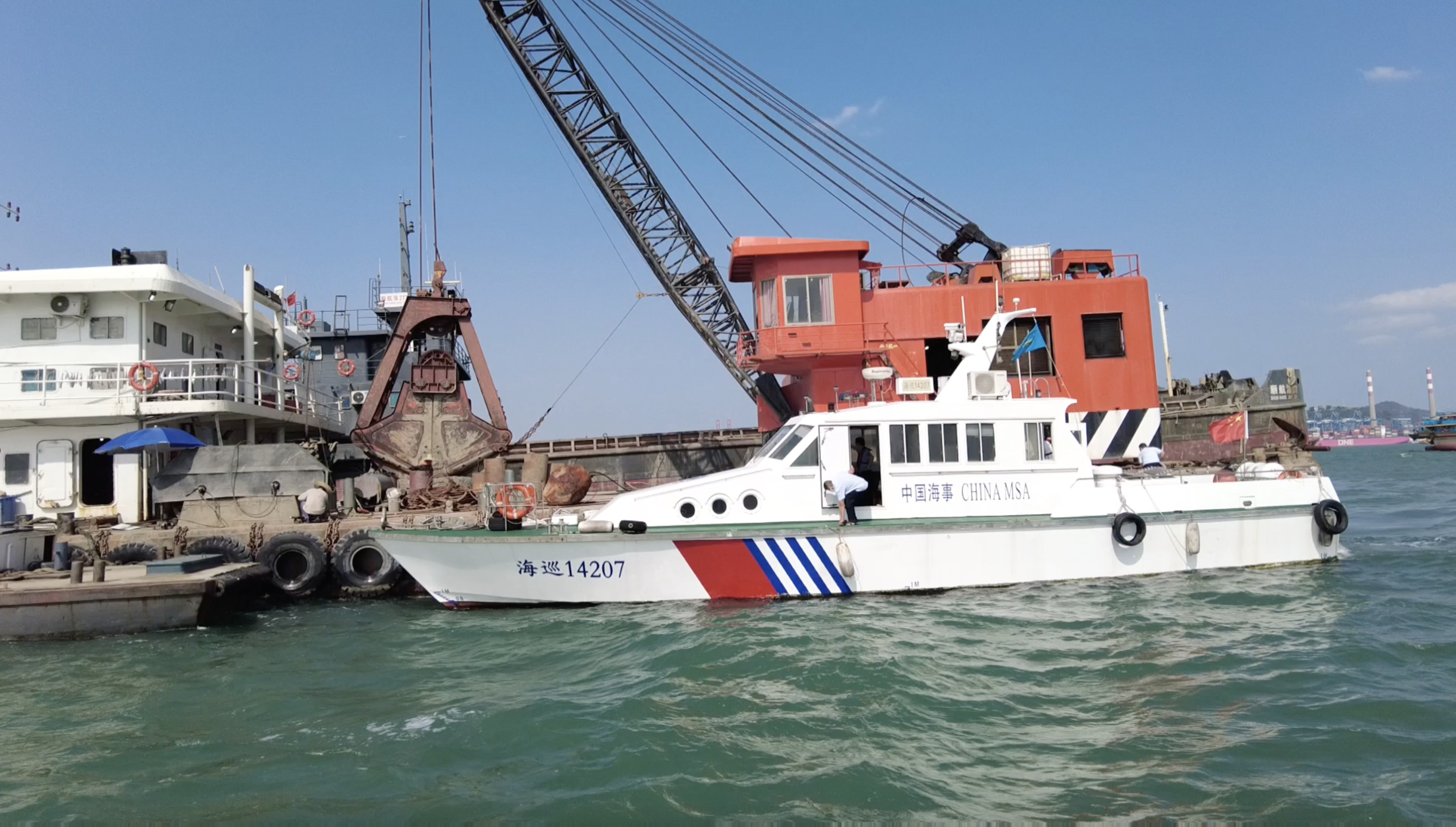 4月15日,深圳海事局、深圳市生态环境局、深圳市规划和自然资源局、深圳海警局四部门在辖区西部海域联合开展2022年近岸海域污染防治联合执法行动。行动共出动海事执法船艇3艘、执法人员23人,检查船舶3艘。