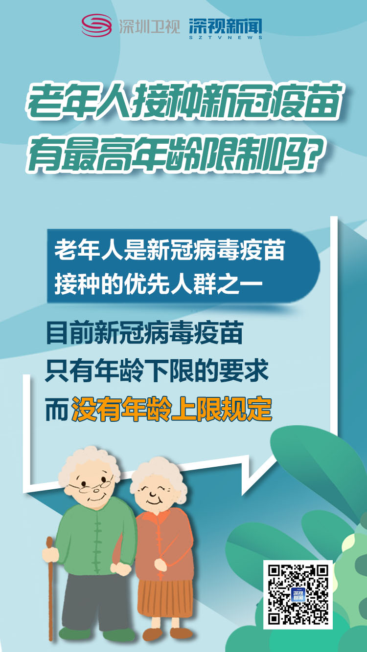 老年人是新冠病毒疫苗接种的优先人群之一。目前新冠病毒疫苗只有年龄下限的要求,而没有年龄上限规定。