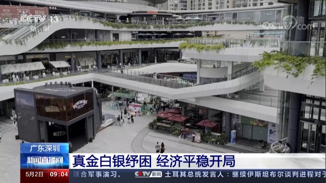 5月2日,央视《新闻直播间》关注深圳真金白银为企业纾困,经济实现平稳开局。报道从“五一”假期各大商圈、景区客流等各方面的经济表现展现深圳旅游、汽车市场逐步回暖,活力满满的景象。