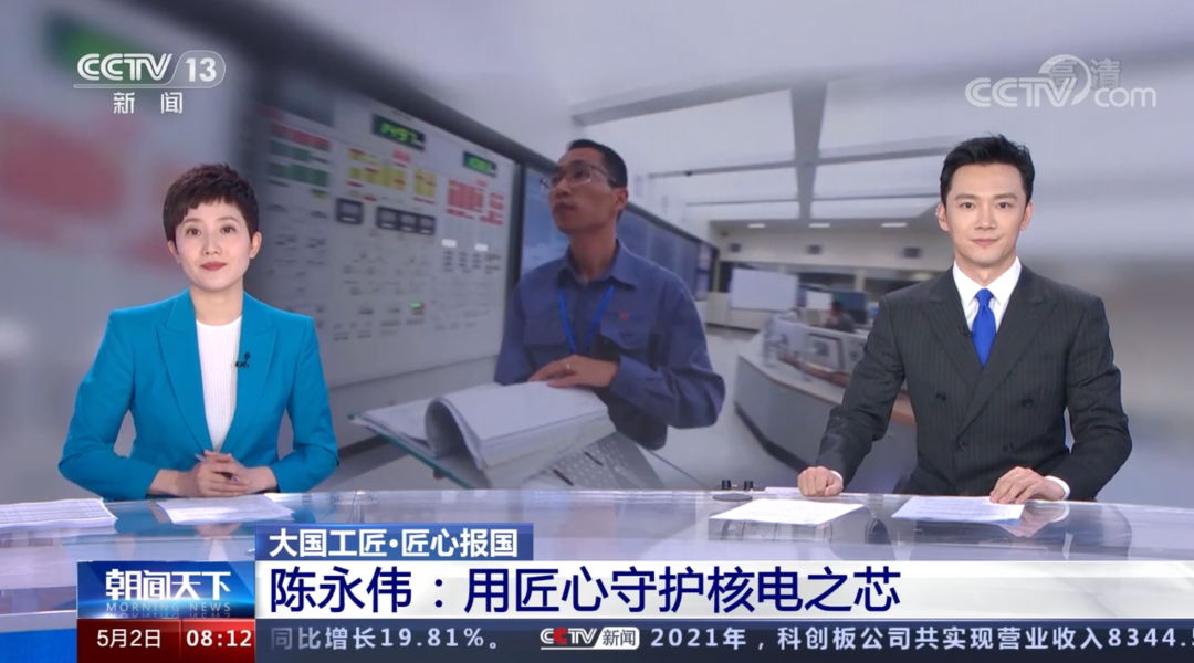 30日晚,央视《新闻联播》推出《大国工匠》系列报道,首期人物就将镜头对准了中广核大亚湾核电站的“大国工匠”陈永伟,讲述其秉承“工匠精神”,为建设核电事业奉献的故事。